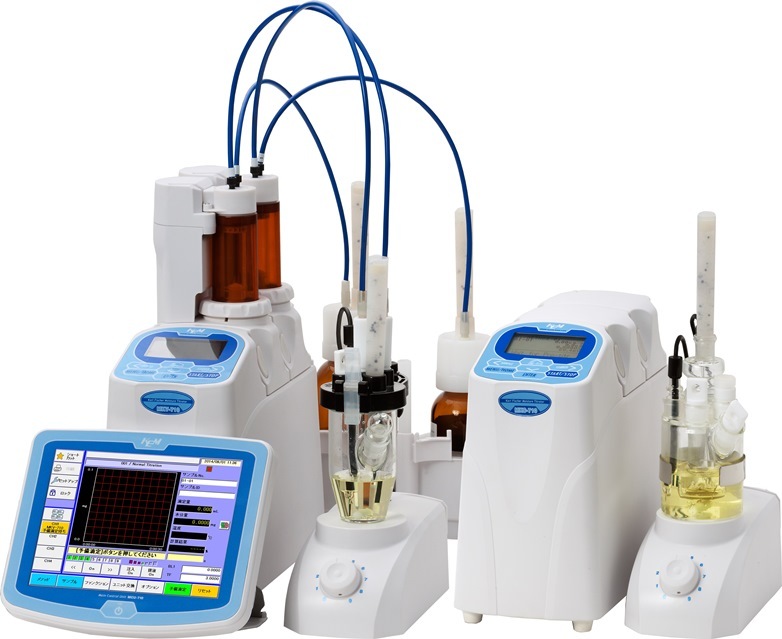MKV-710M: 触摸屏和操作单元之间无线连接,同时控制四台自动滴定测量单元。